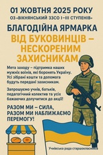 01 жовтня в ОЗ -"Вікнянський ЗЗСО І -ІІІ ступенів" відбудеться благодійна ярмарка:" Від буковинців нескореним Захисникам".